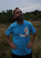 Limited Edition T-shirt by Simen Fisk – ‘The King of Sofa.’ This exclusive piece is available in a crisp blue color, with bold orange and white details that pop. Featuring a striking illustration of Simen’s legendary countdown and sofa. Only a few pieces available!